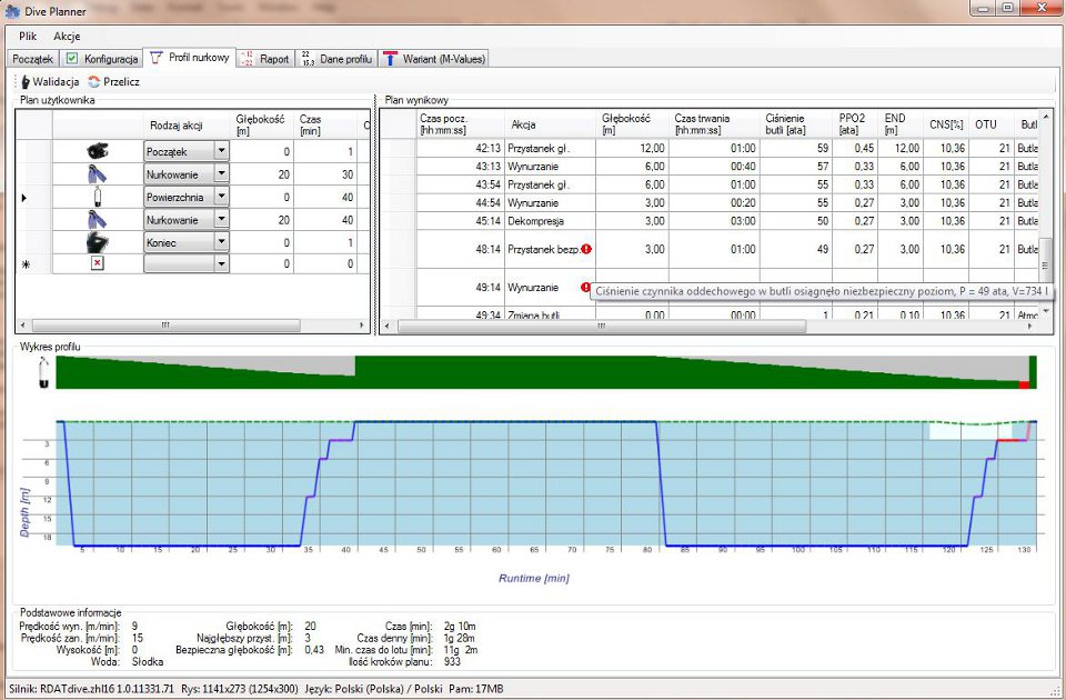 ASYSTENT NURKOWANIA - Aplikacja została stworzona w celu asystowania podczas planowania nurkowania oraz w procesie szkolenia. Aplikacja nie zastępuje tabel dekompresyjnych ani szkolenia – jest uzupełnieniem zdobytej wiedzy i umiejętności, dodatkowym ułatwieniem.... POBIERZ LICENCJE